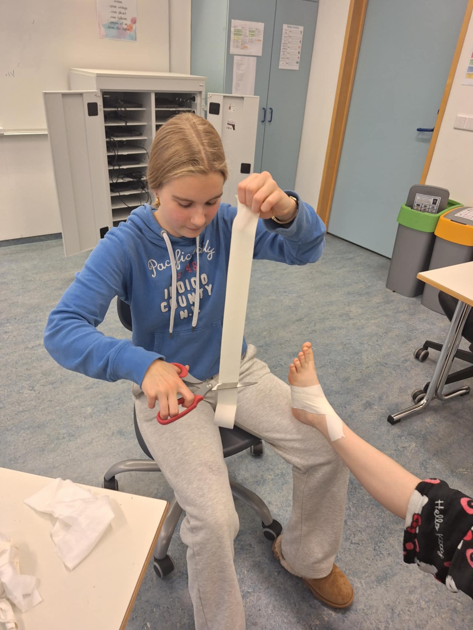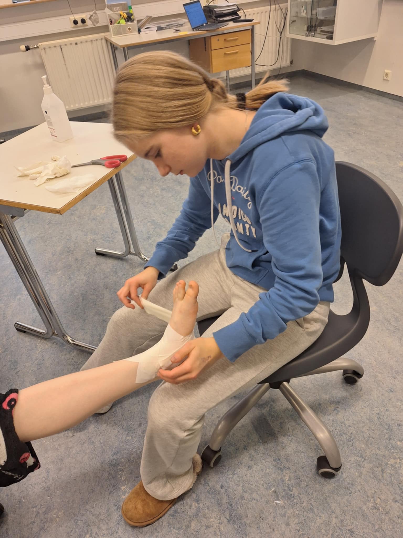 Með fréttinni má sjá myndir úr verklegum tíma í þjálffræði- og þjálfaravalinu þar sem að nemendur fengu að spreyta sig á ökklateipingum.