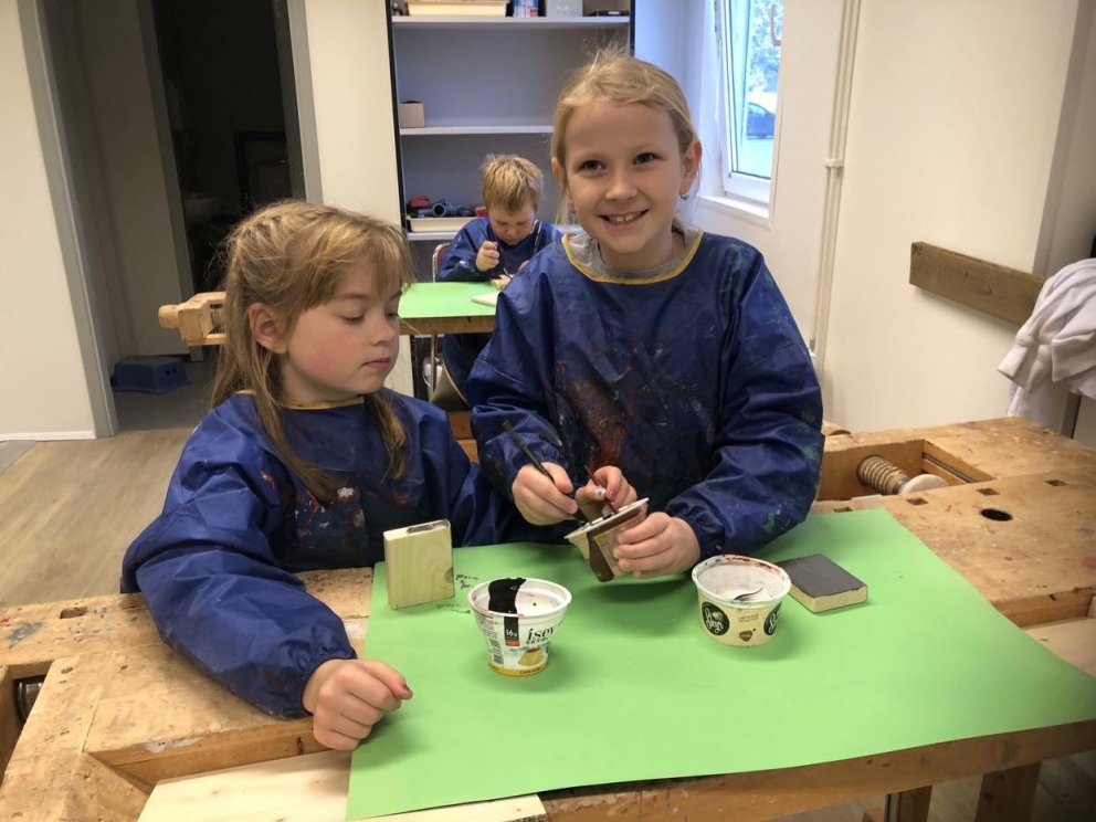 Þá er "nýja" smíðastofan komin í gagnið. Hún er nú í gámunum sem hýstu skóladagheimilið áður og eru nú komnir norðan megin við skólann.