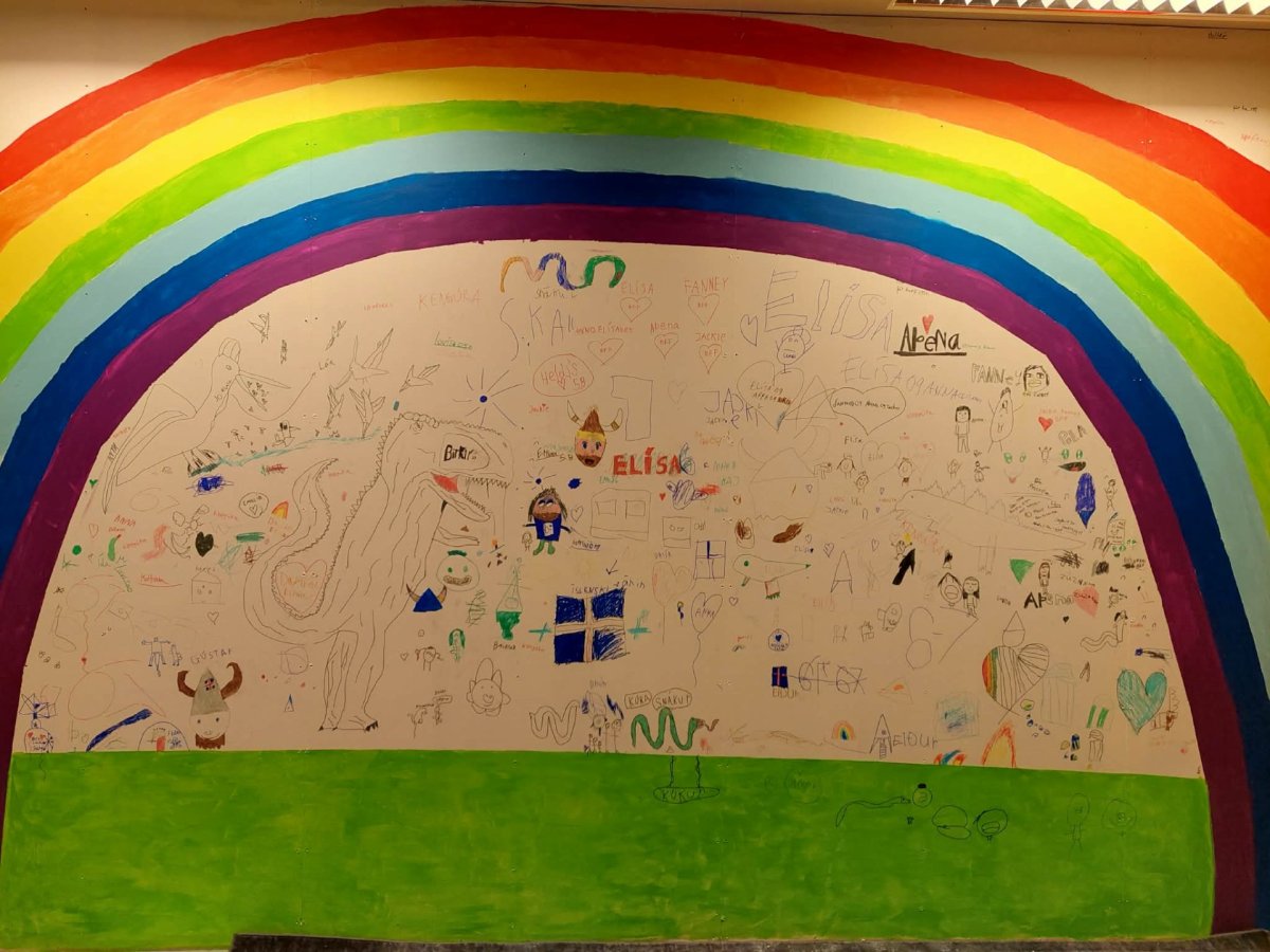 Á þessu skólaári var ákveðið að bjóða uppá skóladagheimilisval bæði á mið- og elsta stigi. Takmarkaður fjöldi nemenda kemst í valið sem hefur verið ansi vinsælt. Á meðfylgjandi mynd má sjá afrakstur vinnu nemenda á unglingastigi sem voru svo heppnir að komast í valið og þeirra barna í 1. - 4. bekk sem eru í vistun á skóladagheimilinu.