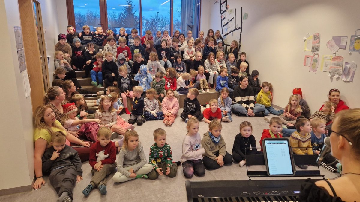 Söngstundin gekk vel og voru börnin öll áhugasöm og tóku virkan þátt.